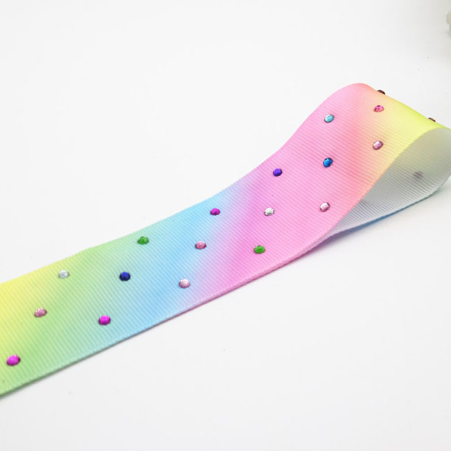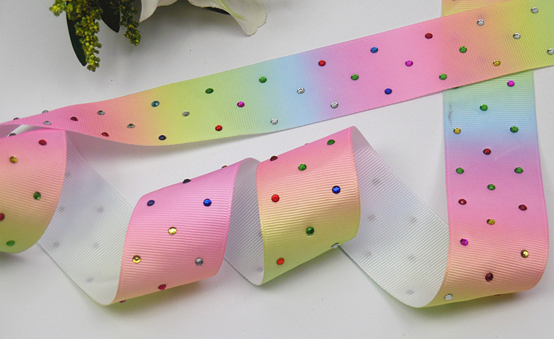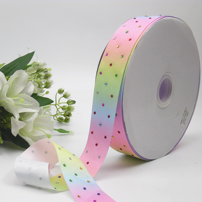 4cm 100yards/roll Rainbow Ribbon DIY Gift Ribbon Hot drilling Rhinestone Grosgrain Ribbon