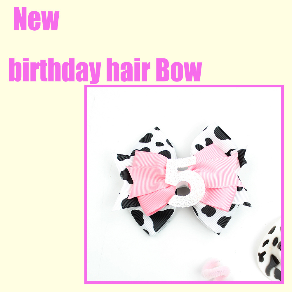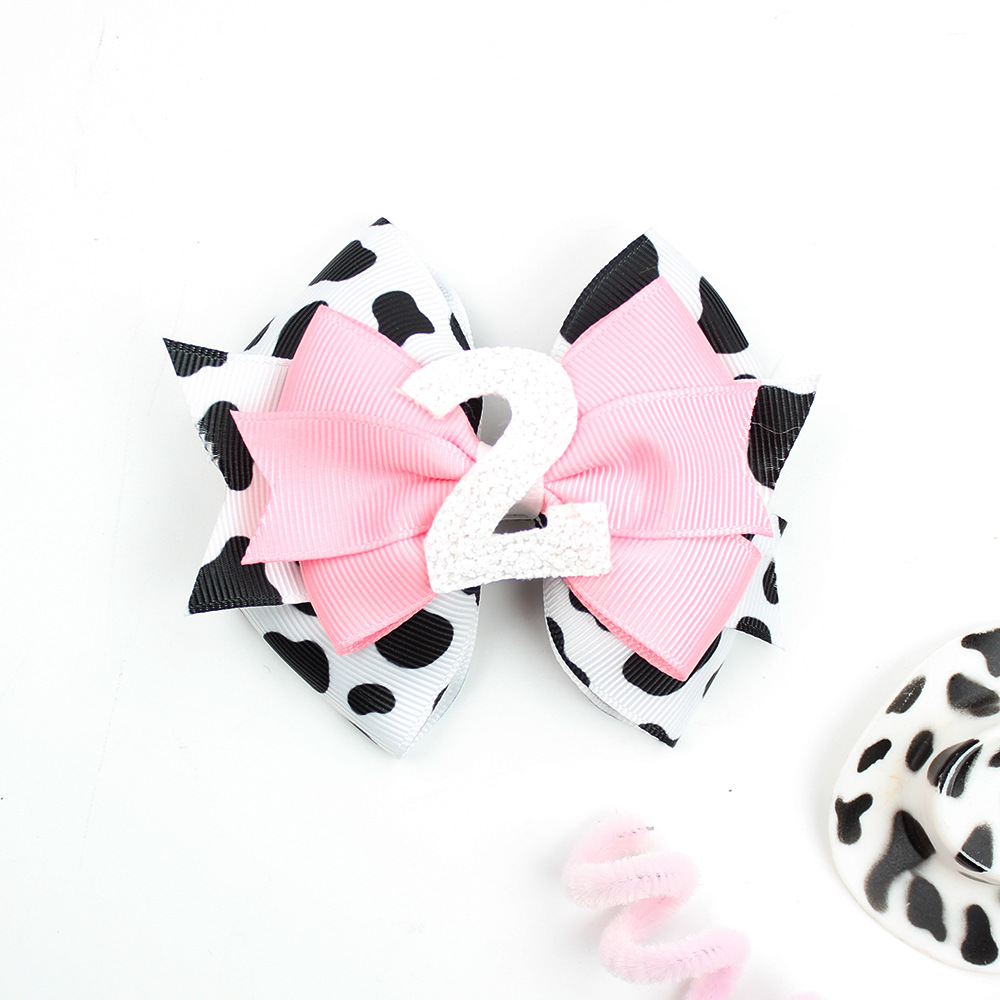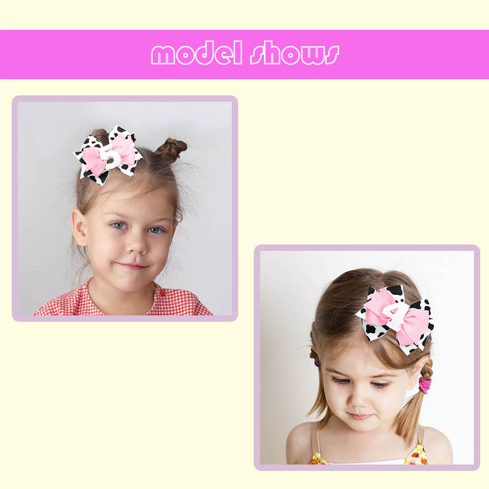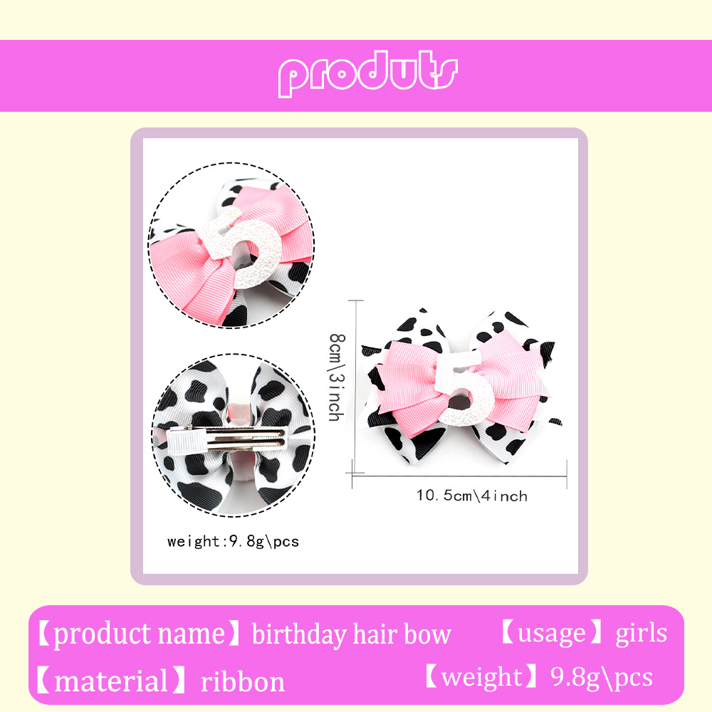 Cow Print Birthday Hair Bow with Number Decoration – Perfect for Kids’ Celebrations