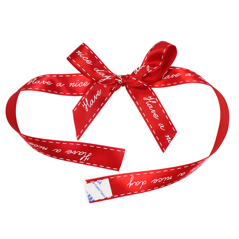 | Item | Custom Logo Printed Pre-Tied Satin Ribbon Bow with Elastic Loop |