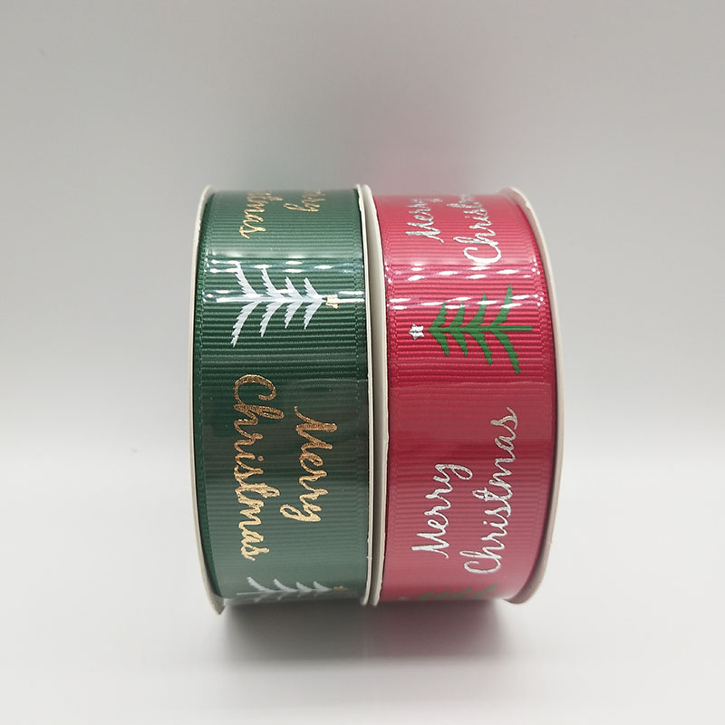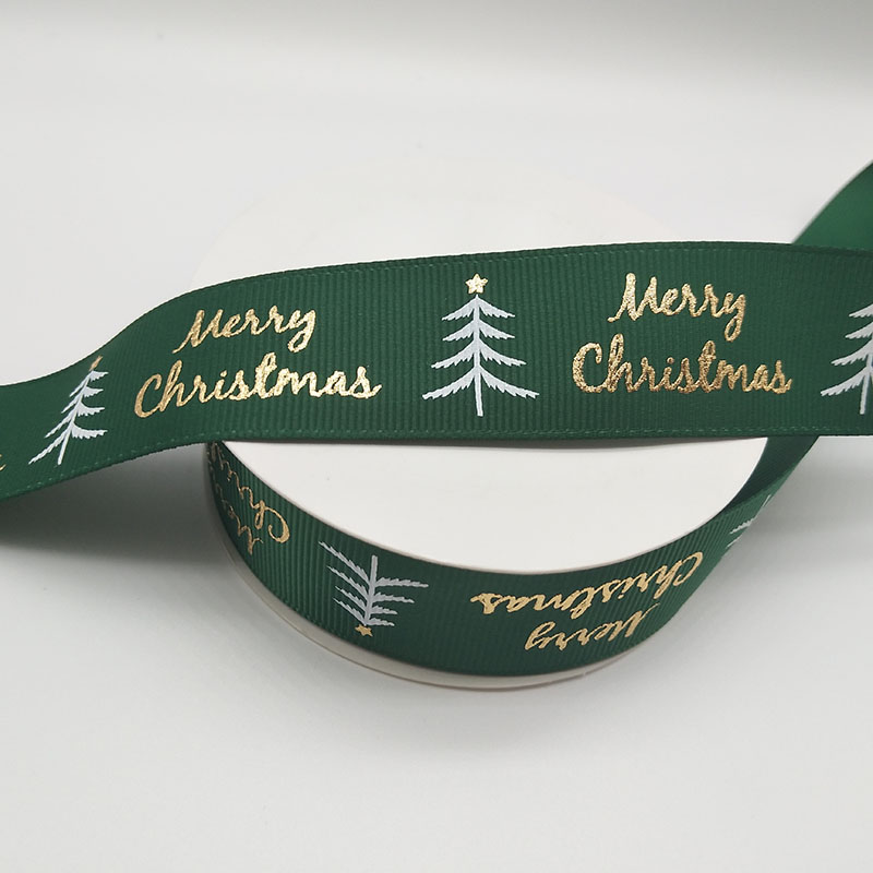 Luxury Merry Christmas Tree Decoration Grosgrain Printed Christmas Ribbon for Festival Celebration