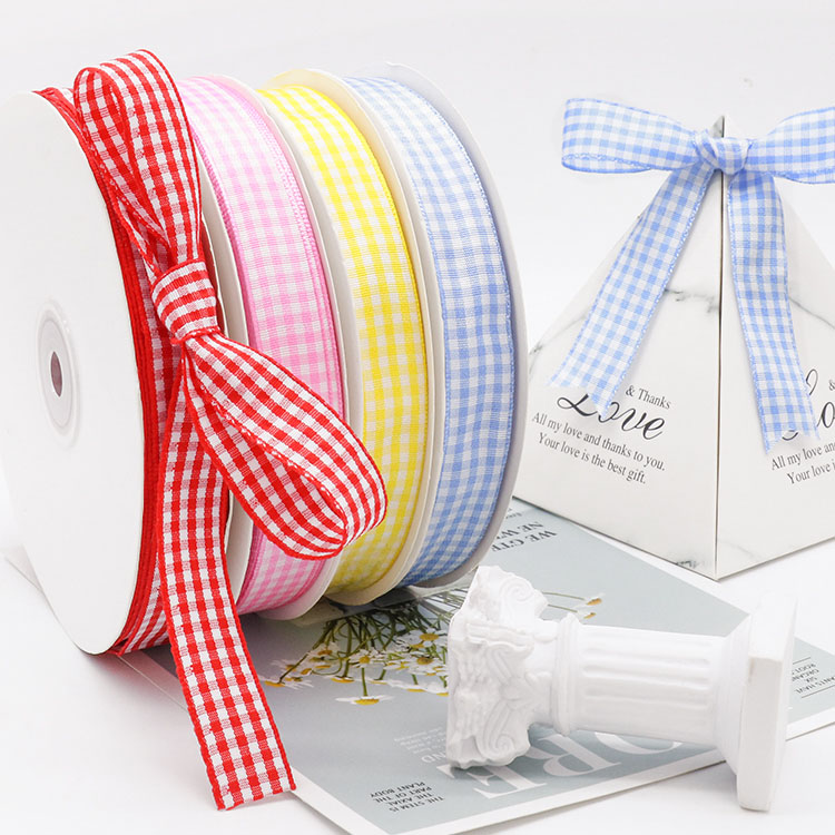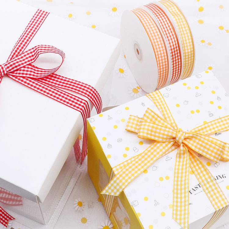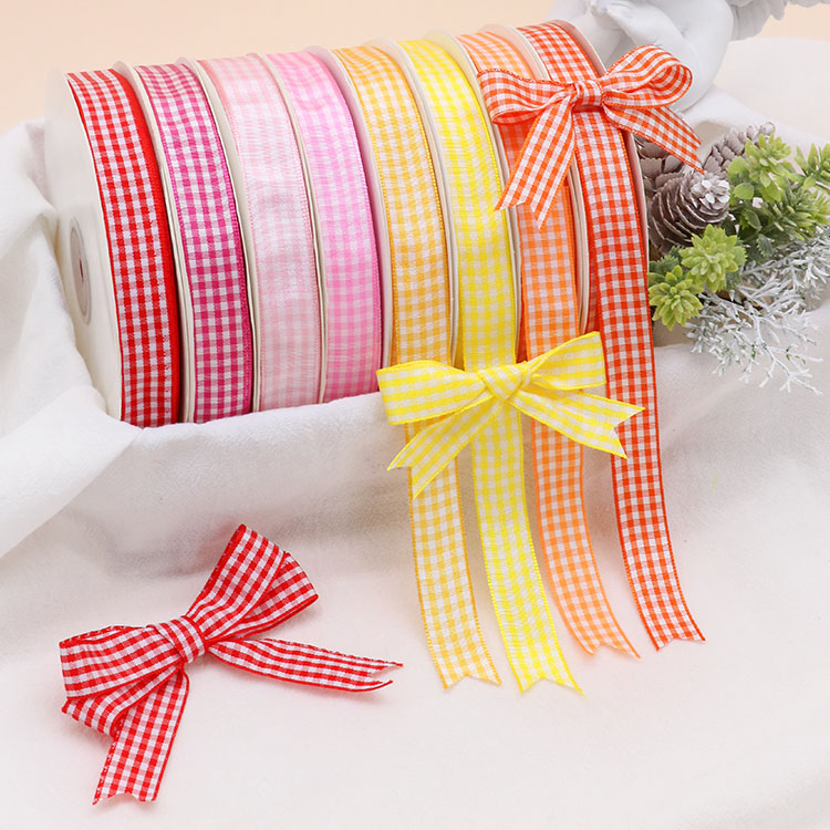 Wholesale 100% Polyester Tartan Gingham Check Plaid Ribbon